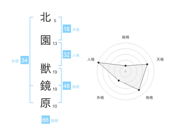 北園 獣鏡原さんを姓名の画数から五運を鑑定