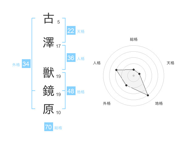 古澤 獣鏡原さんを姓名の画数から五運を鑑定