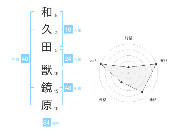 和久田 獣鏡原さんを姓名の画数から五運を鑑定