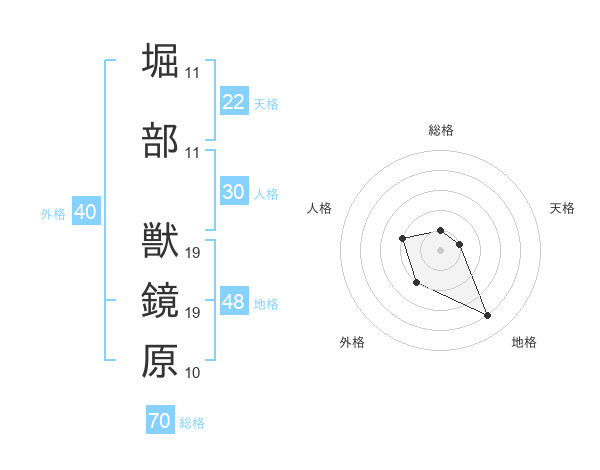 堀部 獣鏡原さんを姓名の画数から五運を鑑定