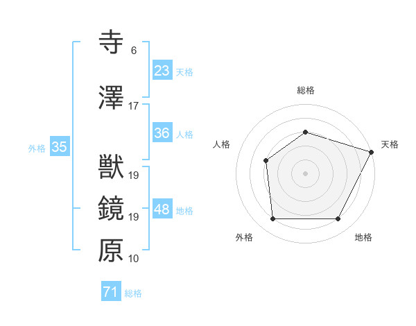 寺澤 獣鏡原さんを姓名の画数から五運を鑑定