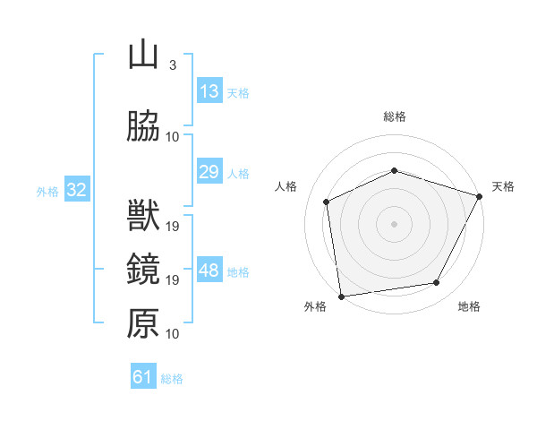 山脇 獣鏡原さんを姓名の画数から五運を鑑定