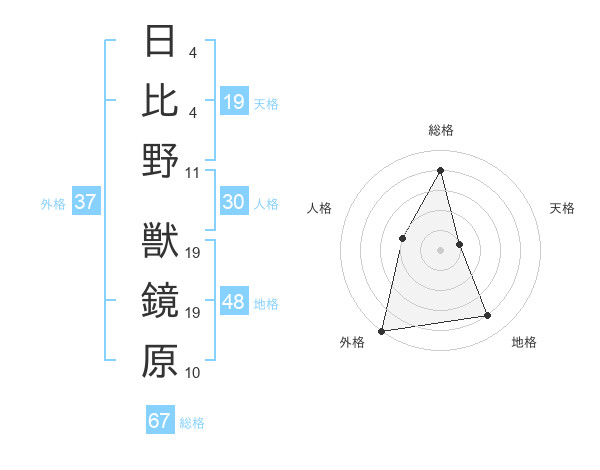 日比野 獣鏡原さんの総格は67画の4点!