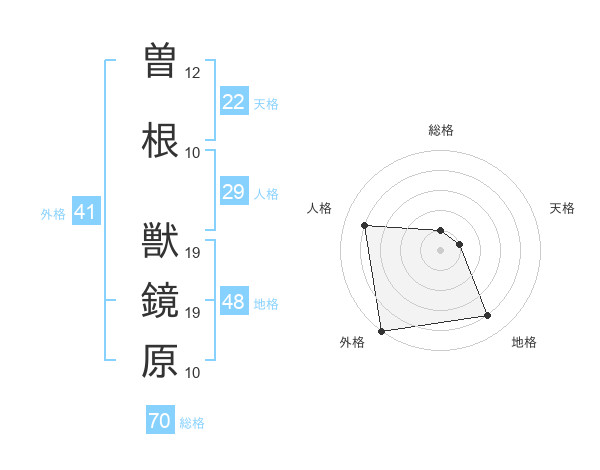 曽根 獣鏡原さんの総格は70画の1点!