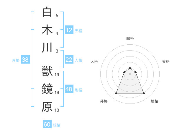 白木川 獣鏡原さんの総格は60画の1点!