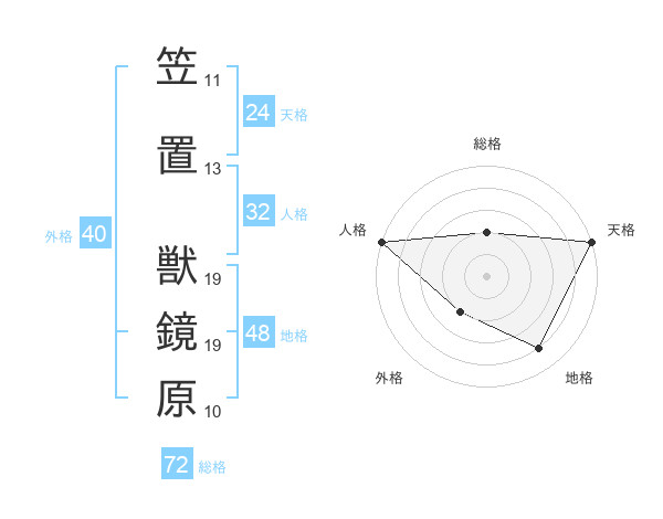 笠置 獣鏡原さんの総格は72画の2点!