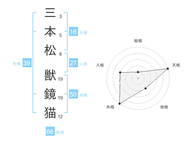 三本松 獣鏡猫さんの天格は16画の5点