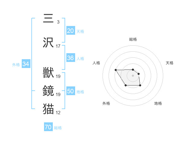 三沢 獣鏡猫さんの総格は70画の1点!