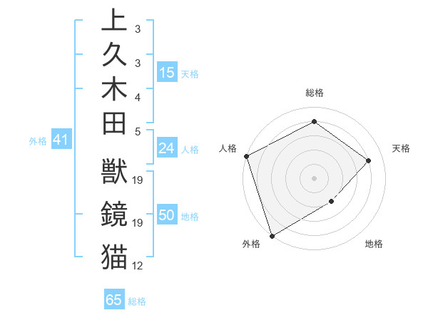 上久木田 獣鏡猫さんの総格は65画の4点!