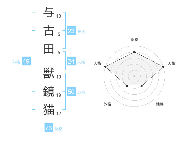 与古田 獣鏡猫さんを姓名の画数から五運を鑑定