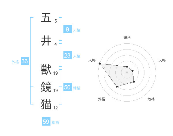 五井 獣鏡猫さんの総格は59画の1点!