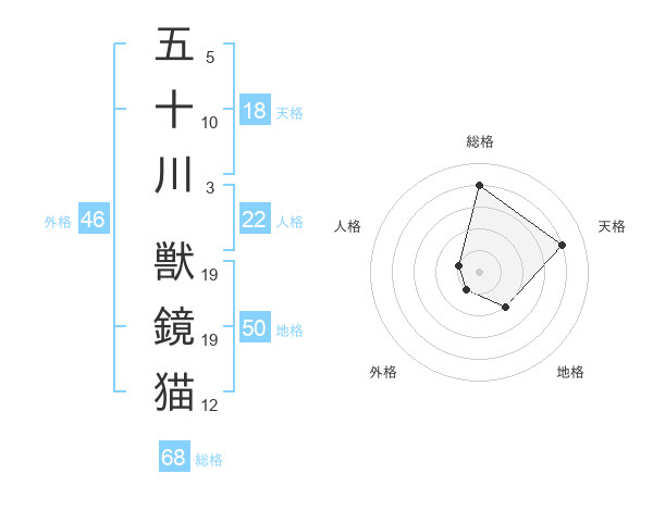 五十川 獣鏡猫さんを姓名の画数から五運を鑑定