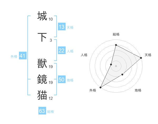 城下 獣鏡猫さんの総格は63画の4点!