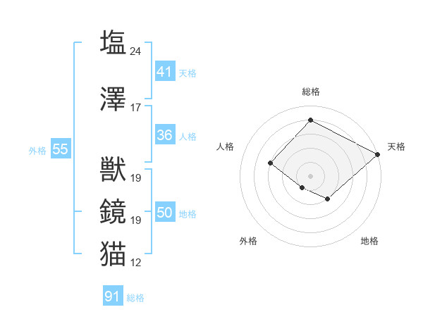 塩澤 獣鏡猫さんの総格は91画の4点!
