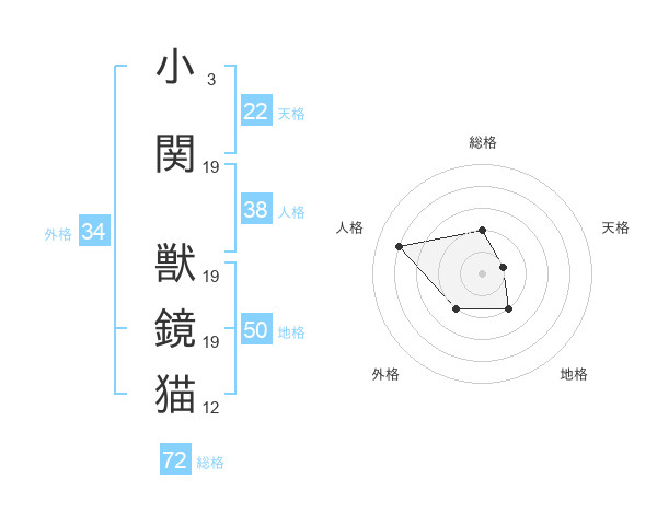 小関 獣鏡猫さんを姓名の画数から五運を鑑定