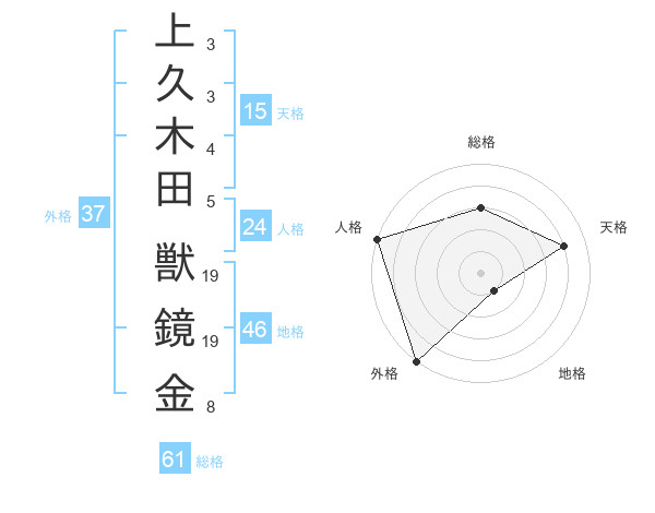 上久木田 獣鏡金さんを姓名の画数から五運を鑑定
