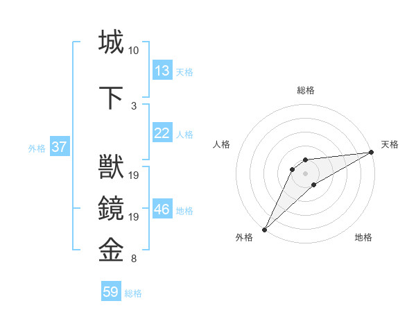 城下 獣鏡金さんの総格は59画の1点