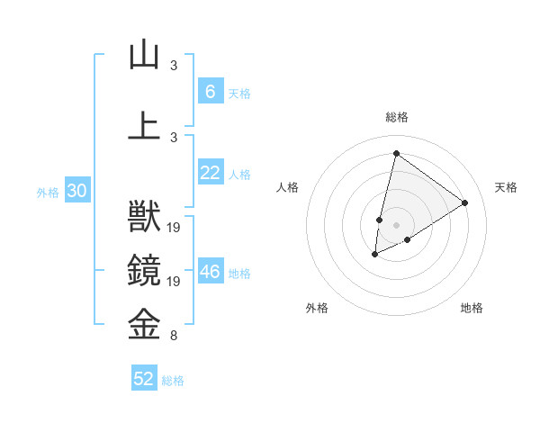 山上 獣鏡金さんを姓名の画数から五運を鑑定