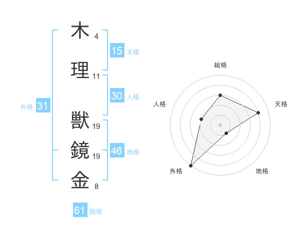 木理 獣鏡金さんの総格は61画の3点!