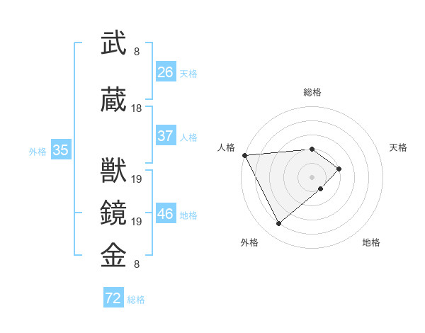 武蔵 獣鏡金さんを姓名の画数から五運を鑑定