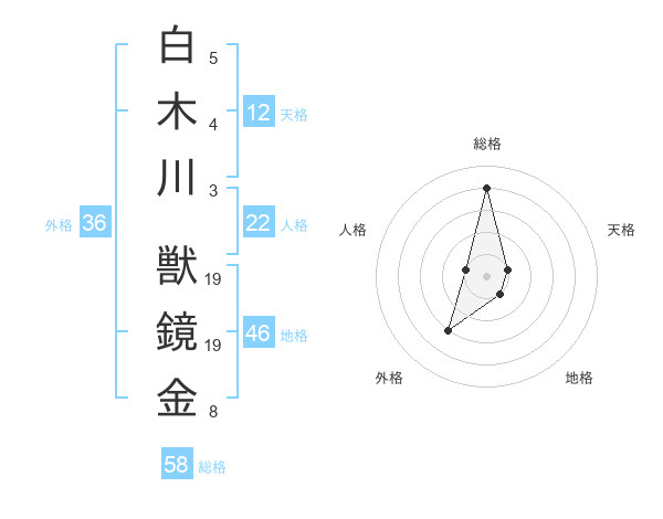白木川 獣鏡金さんを姓名の画数から五運を鑑定