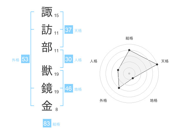 諏訪部 獣鏡金さんの総格は83画の4点!
