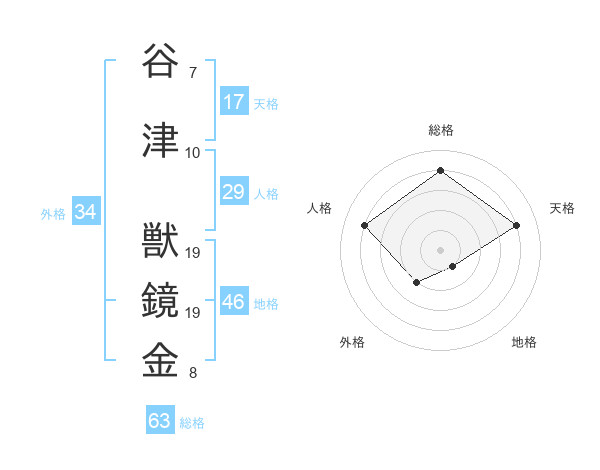 谷津 獣鏡金さんを姓名の画数から五運を鑑定
