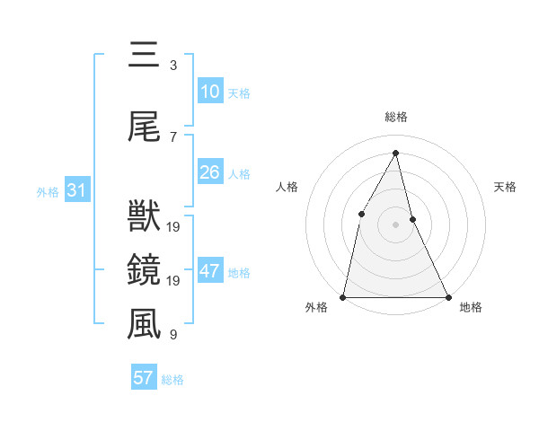 三尾 獣鏡風さんを姓名の画数から五運を鑑定