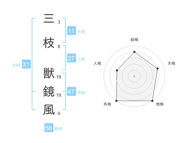三枝 獣鏡風さんを姓名の画数から五運を鑑定