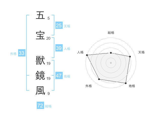 五宝 獣鏡風さんの総格は72画の2点!