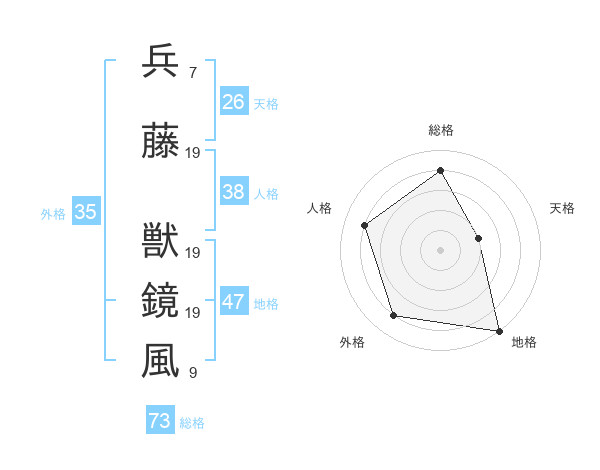 兵藤 獣鏡風さんの総格は73画の4点!
