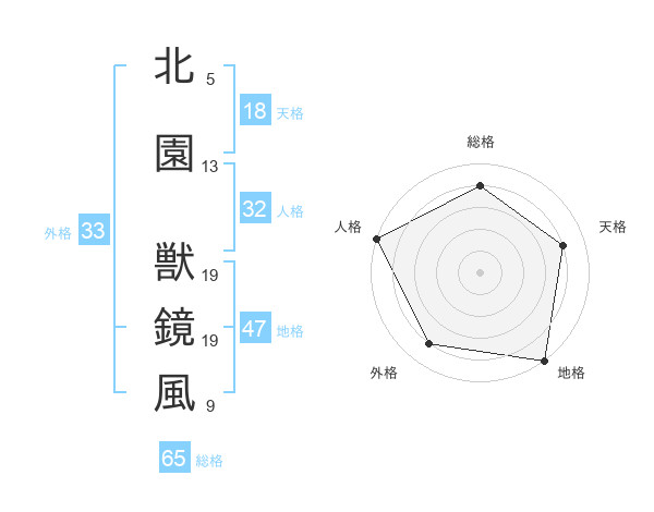 北園 獣鏡風さんの総格は65画の4点!