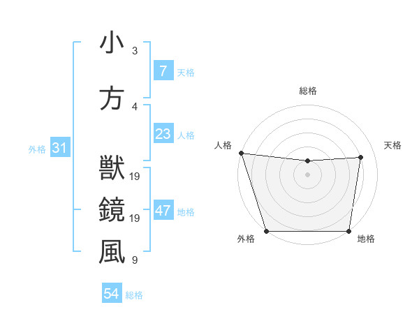 小方 獣鏡風さんを姓名の画数から五運を鑑定