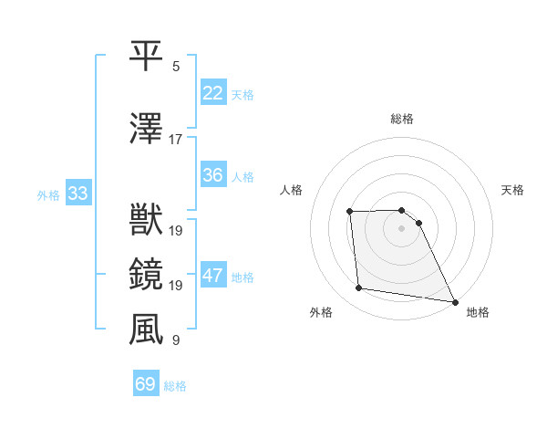 平澤 獣鏡風さんを姓名の画数から五運を鑑定