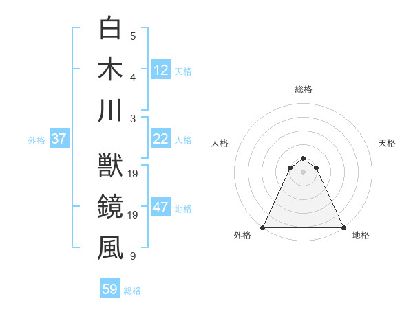 白木川 獣鏡風さんを姓名の画数から五運を鑑定
