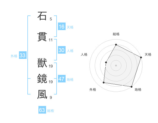 石貫 獣鏡風さんの地格は47画の5点!