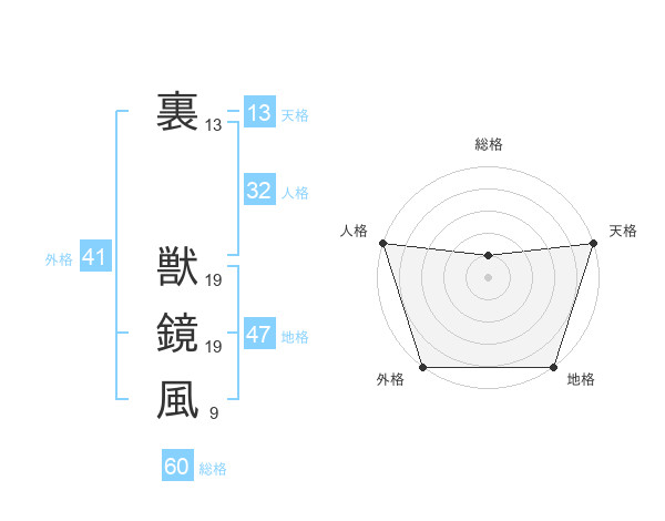 裏 獣鏡風さんを姓名の画数から五運を鑑定