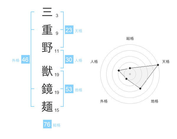 三重野 獣鏡麺さんの総格は76画の1点!