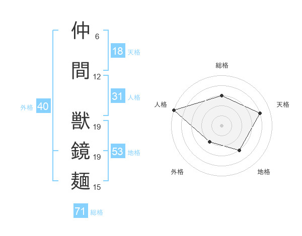 仲間 獣鏡麺さんを姓名の画数から五運を鑑定