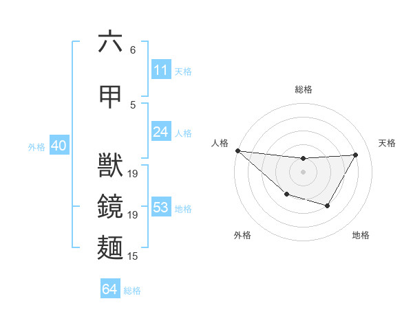 六甲 獣鏡麺さんの名前の鑑定結果は!