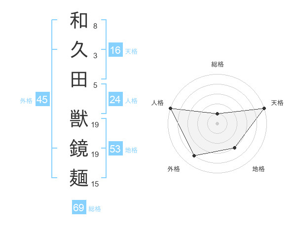 和久田 獣鏡麺さんの名前の鑑定結果は!