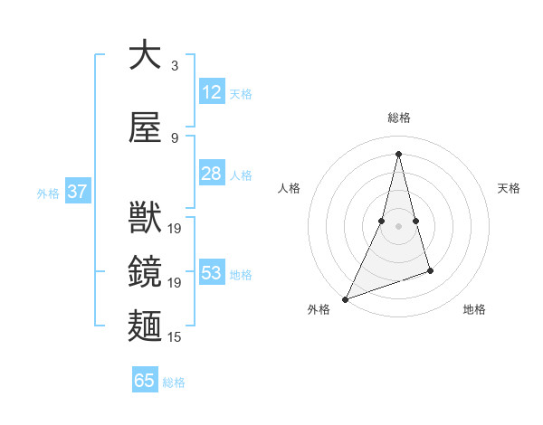 大屋 獣鏡麺さんの名前の鑑定結果は!