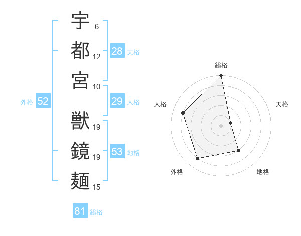 宇都宮 獣鏡麺さんの総格は81画の5点!