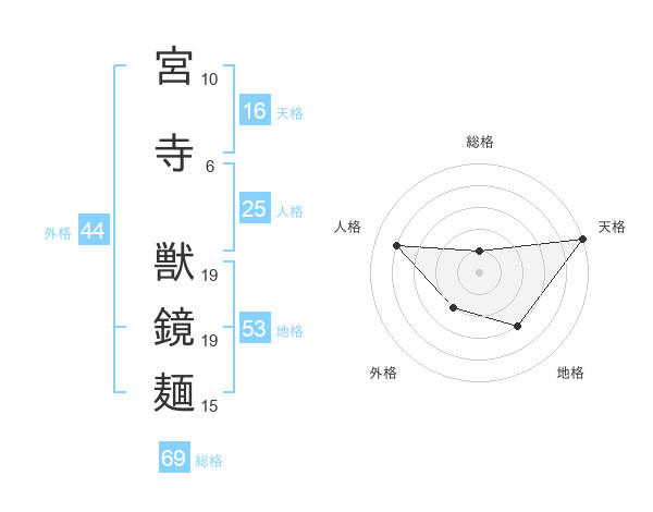 宮寺 獣鏡麺さんの名前の鑑定結果は!