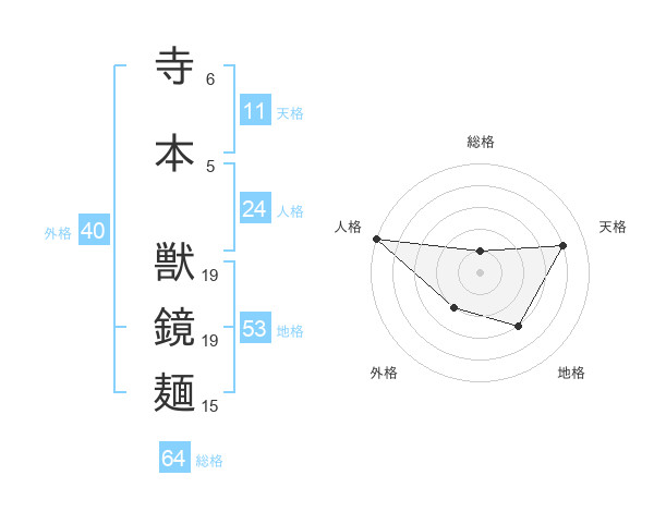 寺本 獣鏡麺さんの総格は64画の1点