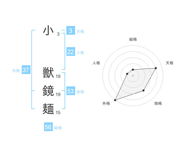 小 獣鏡麺さんを姓名の画数から五運を鑑定