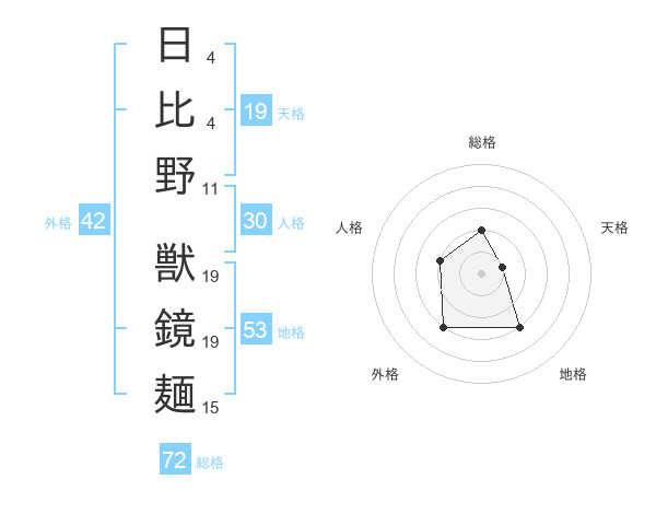 日比野 獣鏡麺さんを姓名の画数から五運を鑑定