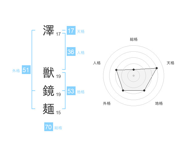 澤 獣鏡麺さんの総格は70画の1点!