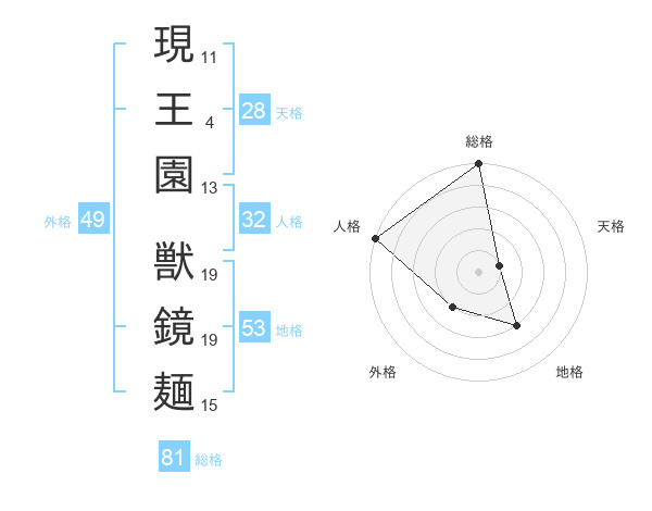 現王園 獣鏡麺さんを姓名の画数から五運を鑑定