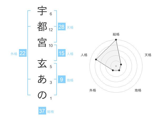 宇都宮 玄あのさんの総格は37画の5点!